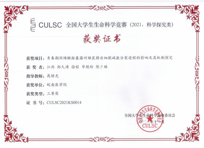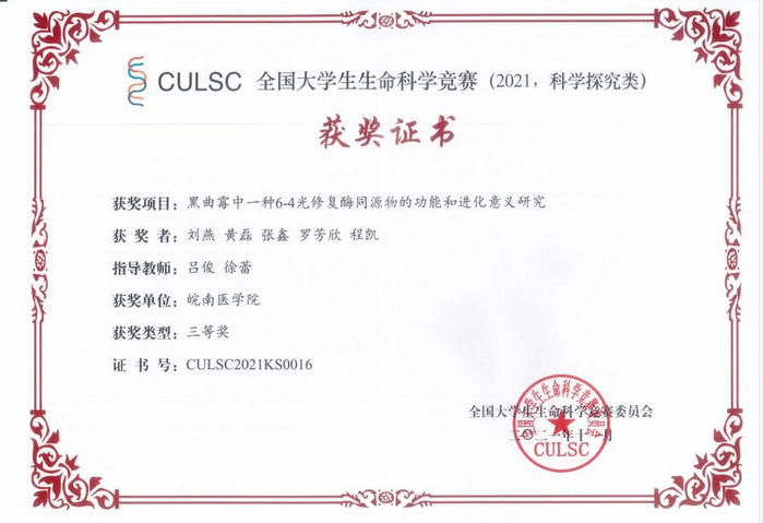 公司教师指导员工在全国老员工生命科学竞赛及安徽省老员工生命科学竞赛中喜获佳绩