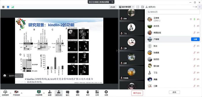 线上师生围绕生物信息学与分子动力学模拟等热点话题与王秀秀进行了积极交流,线上报告互动活跃,精彩纷呈。